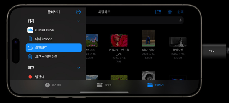 iPhone 사상 최초로 USB 3를 지원해서 비약적으로 빨라진 속도로 데이터를 전송할 수 있습니다.